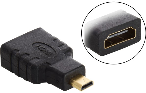 - urospuoleinen micro HDMI ja naaraspuoleinen HDMI -adapteri